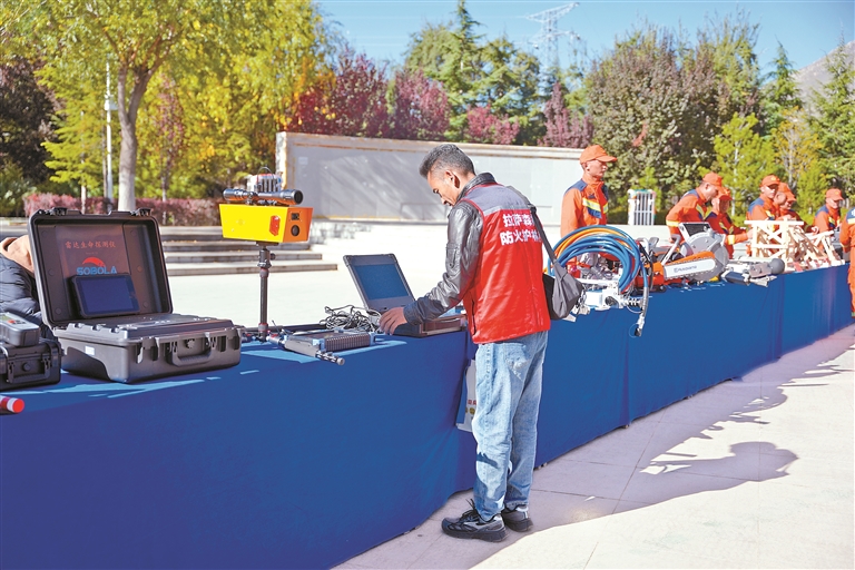 图为宣传员现场展示各类装备的操作方法。记者 余书冉 摄