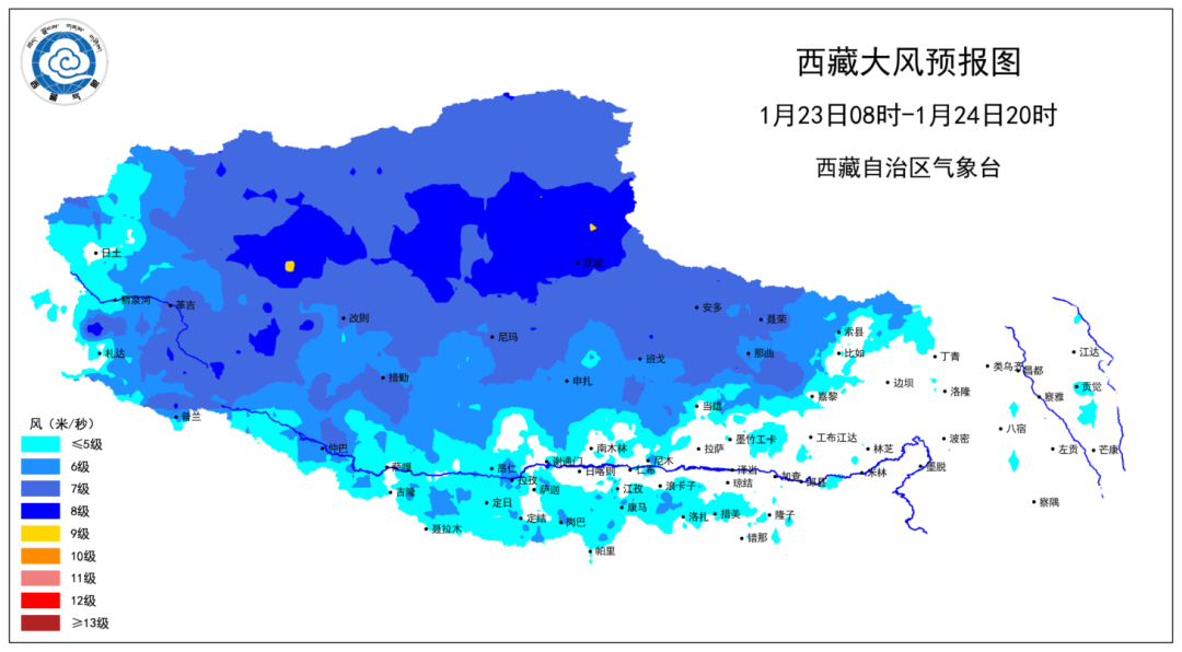 大风灾害风险:23日至24日,那曲、阿里东部、日喀则西部局地有大风灾害中低风险,可能造成农牧设施受损,以及临时搭建物、广告牌等倒塌坠落。