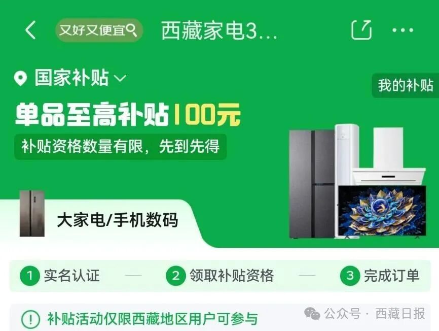 目前,京东西藏以旧换新国补活动已全面启动,西藏消费者可登录京东APP搜索“西藏以旧换新”,领取补贴资格。