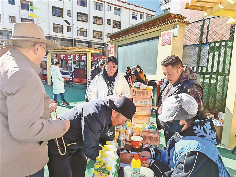 随着春节与藏历新年的临近,城关区夺底街道振兴社区处处洋溢着喜庆的氛围,村民们都在精心筹备迎接“双节”的到来。日前,社区以“党建引领聚民生 三大节日同欢庆”为主题,组织辖区居民聆听宣讲、观赏歌舞、齐跳锅庄,并向困难群众送上米、面、油等慰问物资。