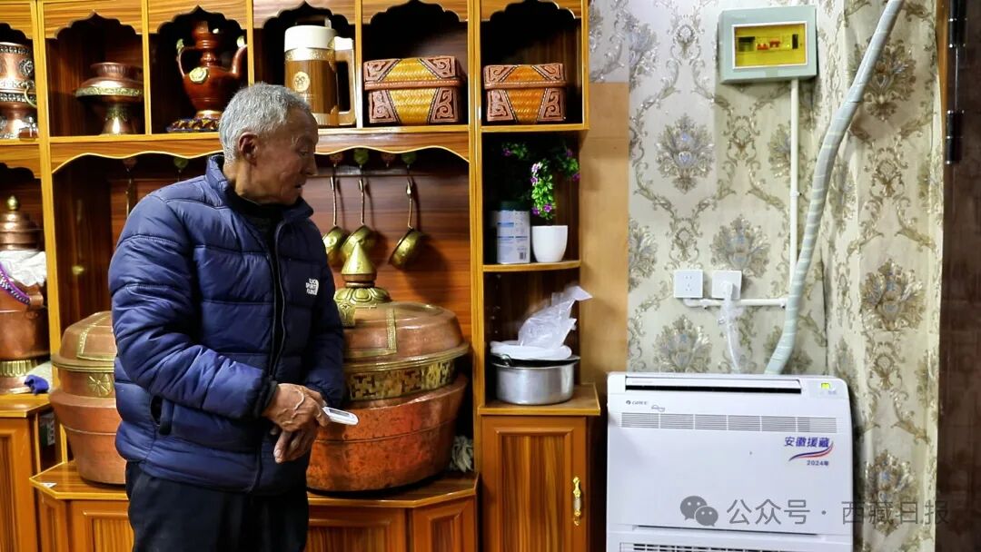 2024年底,安徽省援藏工作队借助哲古风电场输出的绿色电力,为哲古镇分散居住的牧民安装热泵热风机,推行分户供暖,破解高海拔地区的取暖难题。截至目前,哲古镇超过1300户农牧民家庭和机关单位告别燃粪取暖,用上了清洁电暖。