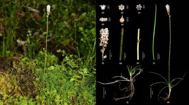 2.墨脱粉条儿菜(Aletris medogensis W.B.Ju,Y.L.Qiu & Bo Xu):该物种属于沼金花科粉条儿菜属,由中国科学院成都生物研究所研究人员发表于《Ecology and Evolution》。研究基于详细的形态比较与叶绿体全基因组序列分析,确定其与高山肺筋草(A.alpestris)亲缘关系最近,但在形态(如花序具腺毛)及基因组结构(如反向重复区边界变异、ycf1基因假基因化等)上存在显著差异,故确立为新种。该多年生草本目前仅知分布于墨脱县高海拔溪流边的有限生境中,由于其种群规模未知,其保护现状被暂评估为数据缺乏。