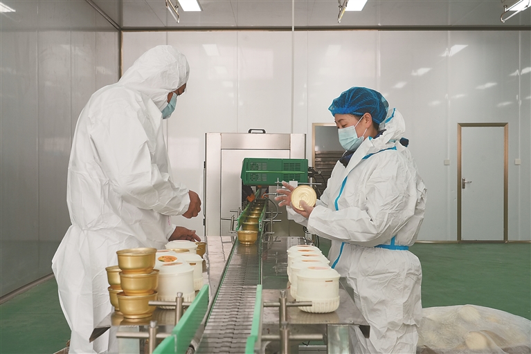 工人在检查藏香鸡罐装杀菌、包装一体化生产情况。记者 平措郎加 通讯员 亚拥 斯郎曲平 摄