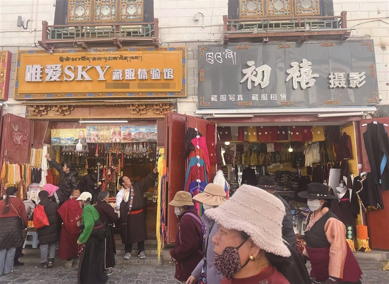 他们无需复杂的市场调研数据,仅凭多年的经营经验,就能精准捕捉客群变化与需求转换。从旅拍服务到藏装定制,从奶茶饮品到粮油干肉,商品的切换背后,是对本地生活节律的深刻理解:他们知道游客何时到来,何时离去;明白市民在不同季节需要什么,节庆时期盼什么。这种扎根本土的市场响应能力,让拉萨的小商铺在市场经济的浪潮中站稳脚跟,也让“换季经济”成为高原商业独有的韧性样本。