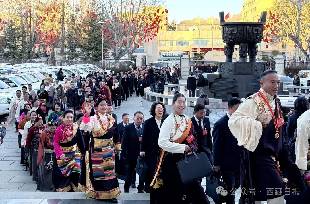 图为自治区十二届人大四次会议开幕当天,各族代表意气风发步入会场。