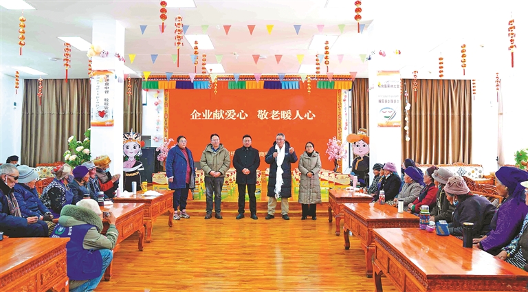 活动中,甲玛赤康祥和商贸有限公司为全县277名环卫工人、167名孤寡老人以及42名敬老院工作人员送上慰问物资。