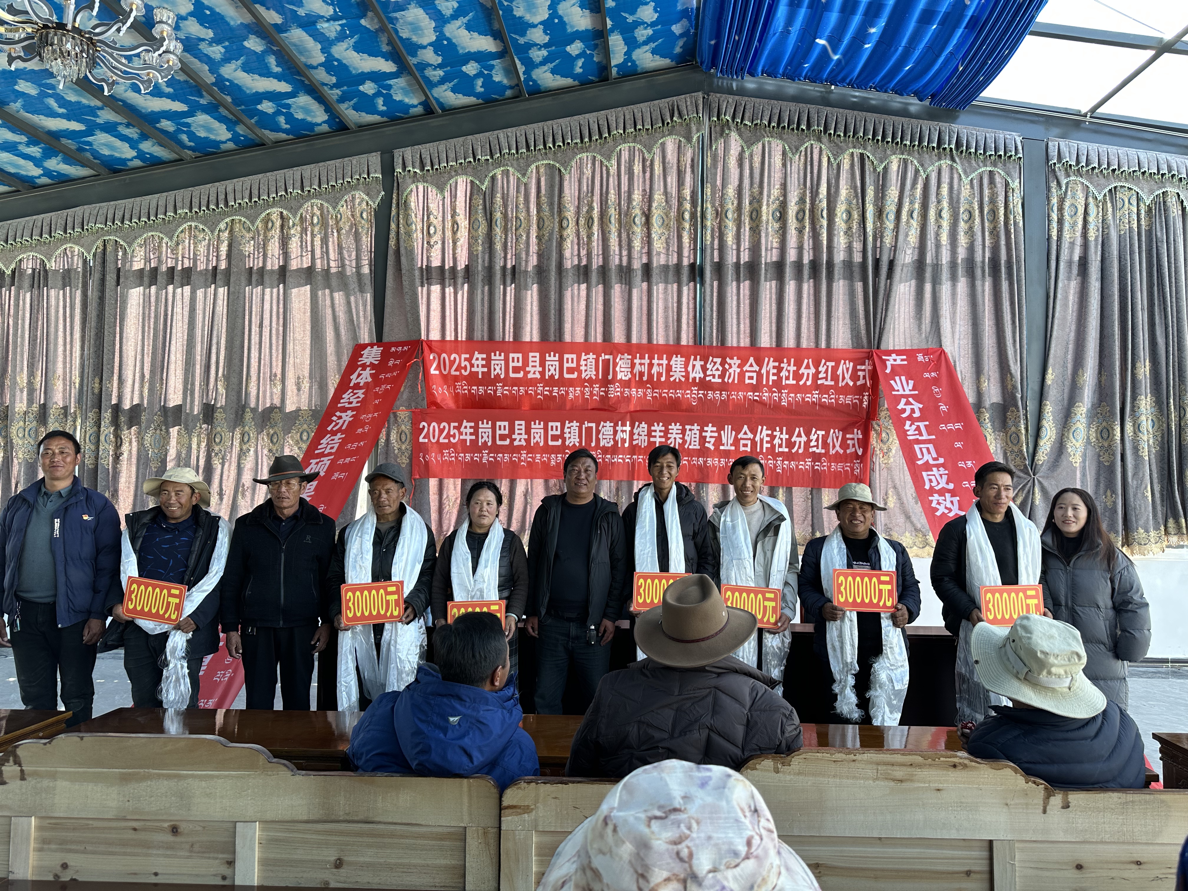 在特色养殖产业发展上,门德村扎实推进岗巴羊养殖合作社规范化运营,产业发展成效显著。2025年合作社累计出栏羊2315只,实现分红总额1419000元,收益分配精准惠及各类经营主体与群众。其中,按股向社员分红384200元,村集体分红210000元;发放劳务工资279790元、放牧人员工资402000元,同时为放牧人员额外分红岗巴羊,折价10800元。合作社还同步落实多项实物分配,支付土地租赁费37149元,向社员分配羊毛折价40061元、大米分红折价55000元,切实让群众从产业发展中受益。此外,村集体经济依托发展成果,计划为全村95户村民发放美的牌冰箱作为春节、藏历新年慰问品,物资折价共计97850元,以暖心举措传递集体关怀。