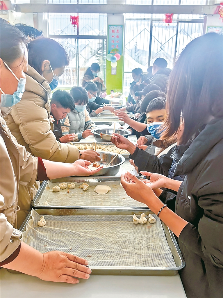 西藏儿童福利院组织爱心妈妈、干部职工与孩子们欢聚一堂,一起包饺子。记者 嘎娃白玛 摄