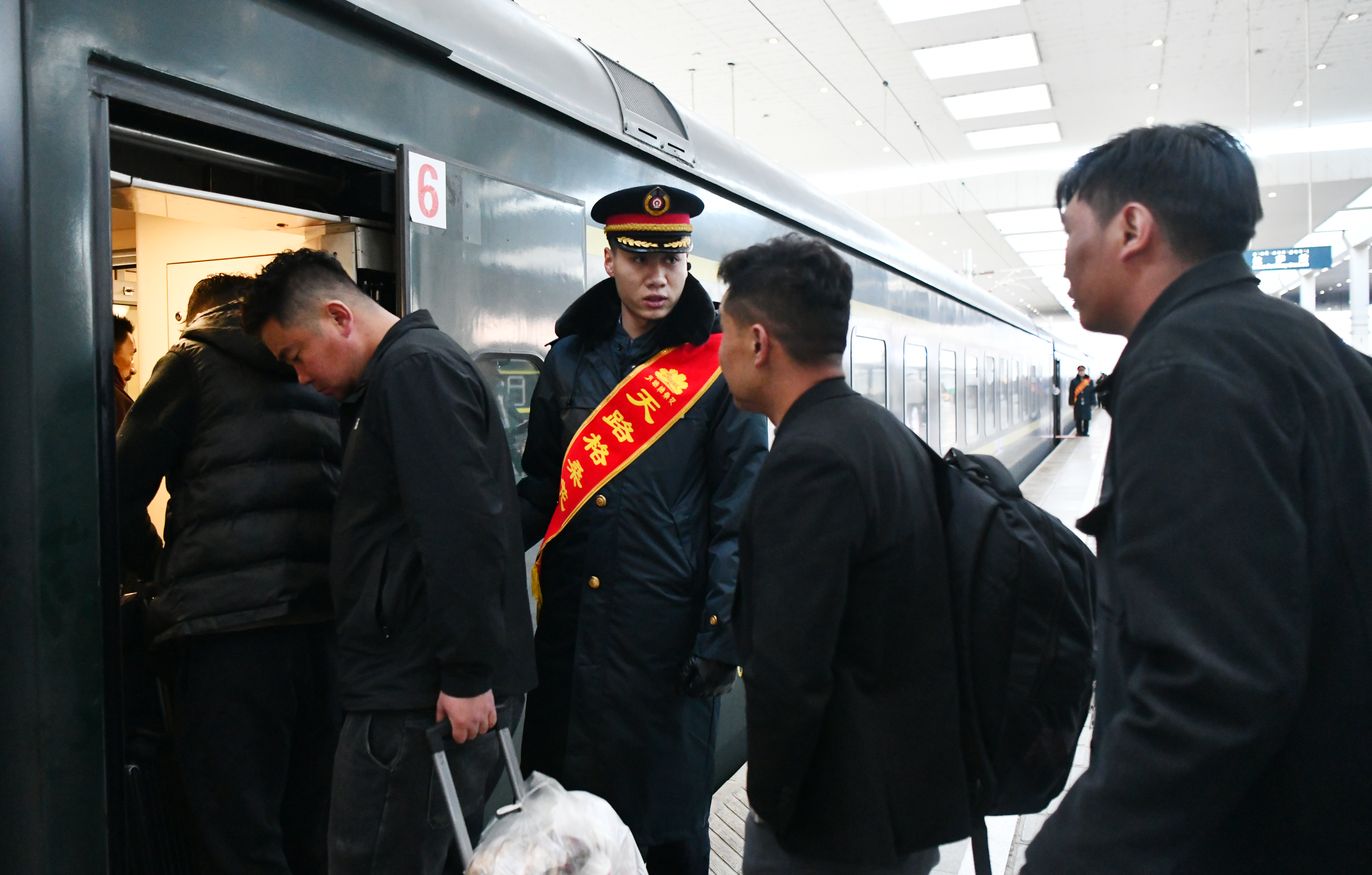 图为春运伊始,在日喀则火车站踏上返乡路的小旅客送上新春祝福。记者 扎西顿珠 摄