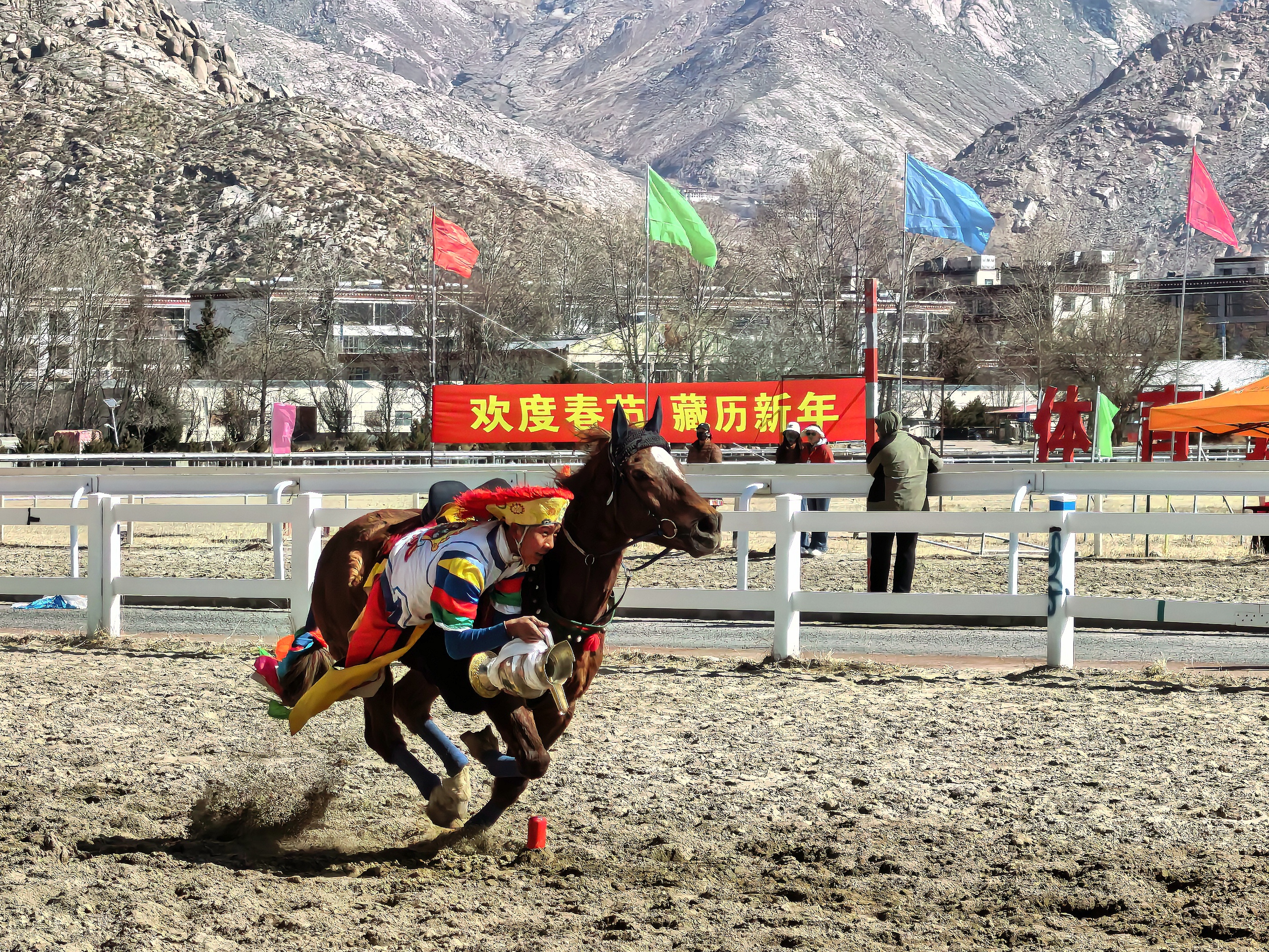 本网拉萨2月20日讯(记者 平措诺吉 郑璐)20日,藏历新年初三,拉萨阳光明媚、晴空万里。北郊赛马场内人声鼎沸、彩旗猎猎,2026年藏历新年初三民族传统马术表演暨民族赛马活动在这里精彩上演,为各族群众献上一场独具特色的节日文化盛宴。