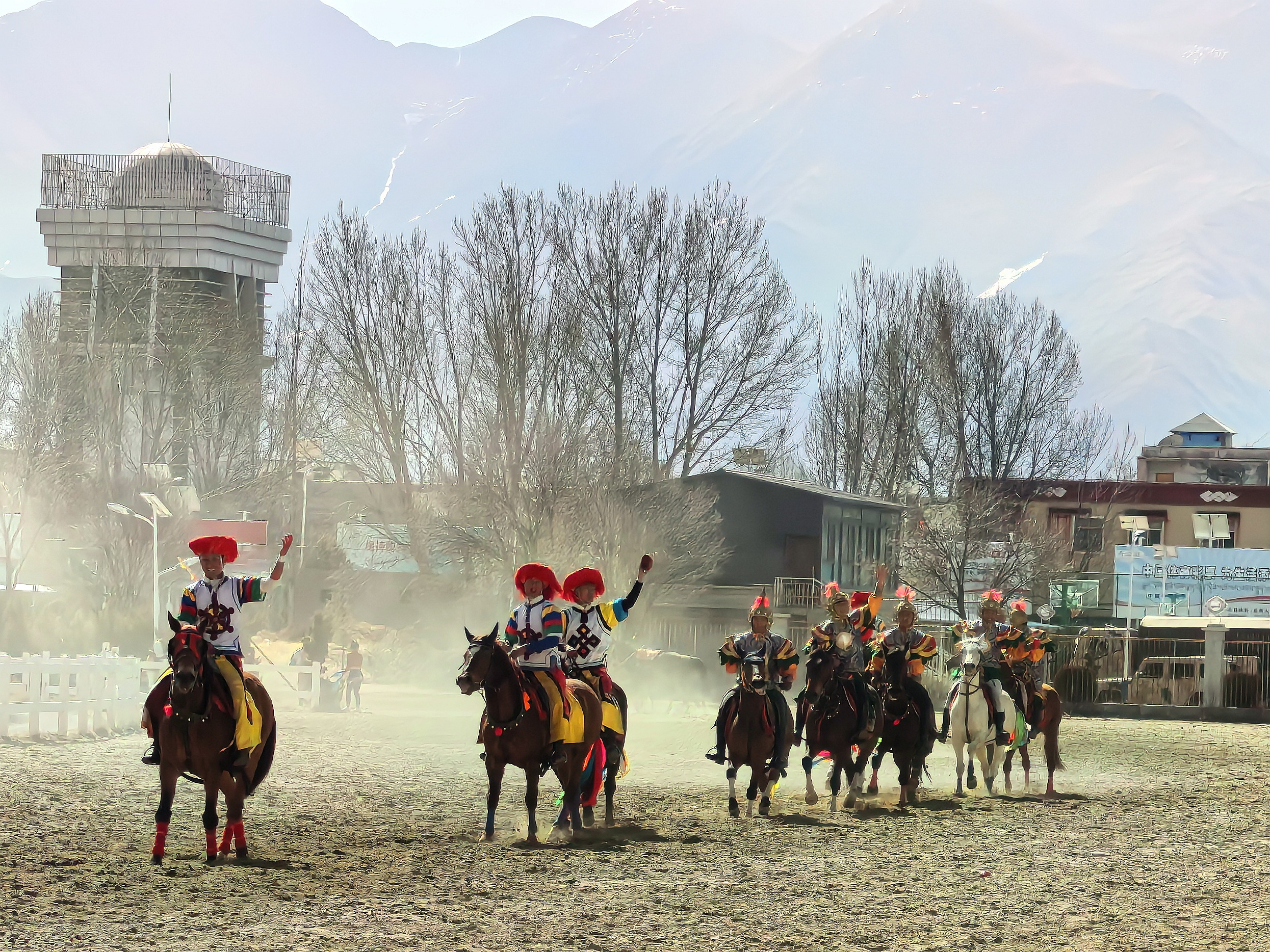 上午10时30分许,伴随着激昂的入场曲,身着节日盛装的骑手们驾驭着骏马昂首入场,拉开了活动的帷幕。今年的活动恰逢藏历火马年,对于这项延续了多年的传统赛事而言,更添一份特殊意义。