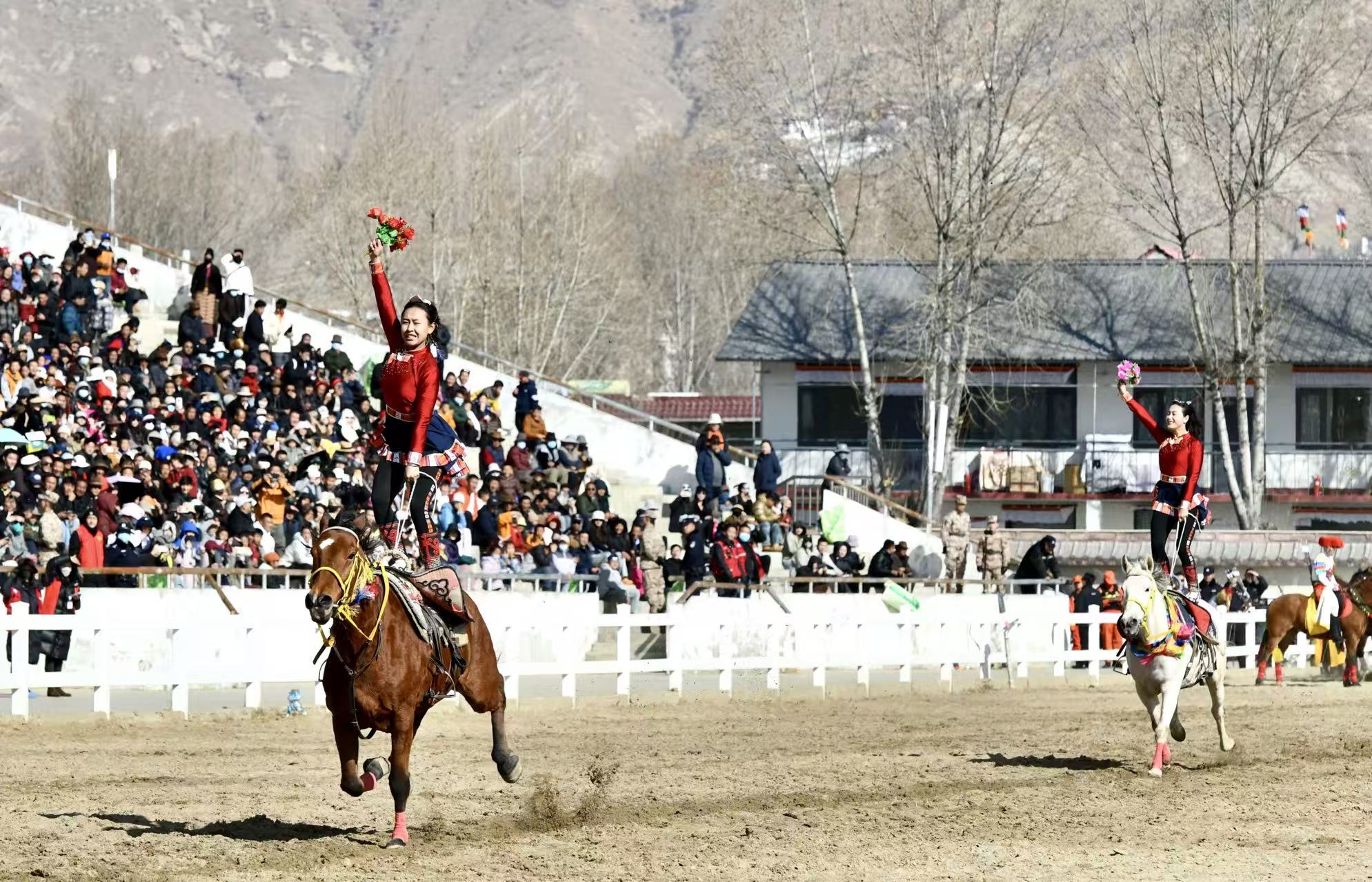 在随后一个多小时里,骑手们轮番上阵,展示马上拾哈达、单人单马、多人多马等18个大项、20余个小项的民族传统马术技艺。精湛的骑术、惊险的动作,引得现场5000余名观众掌声、欢呼声此起彼伏。与此同时,无限定2000米、3000米、5000米三个组别的民族速度赛马穿插进行,一匹匹骏马在骑手的策骑下如离弦之箭,奋蹄争先,尽显高原赛马的独特魅力。