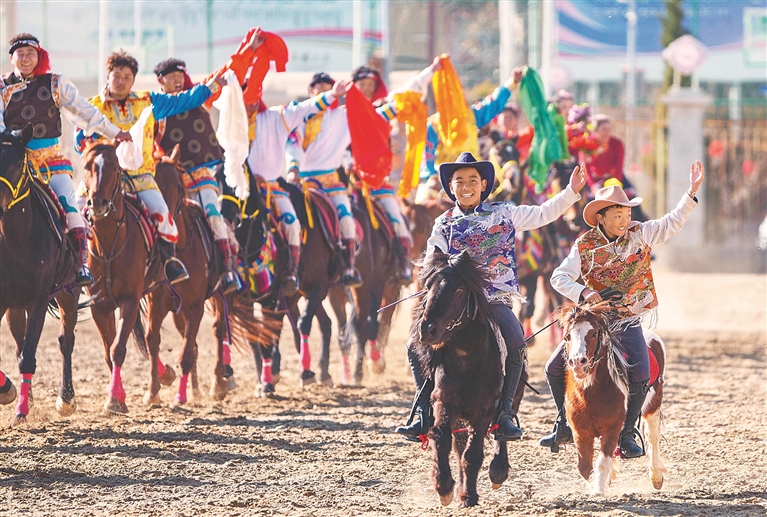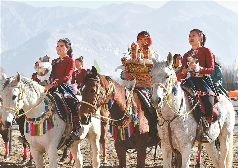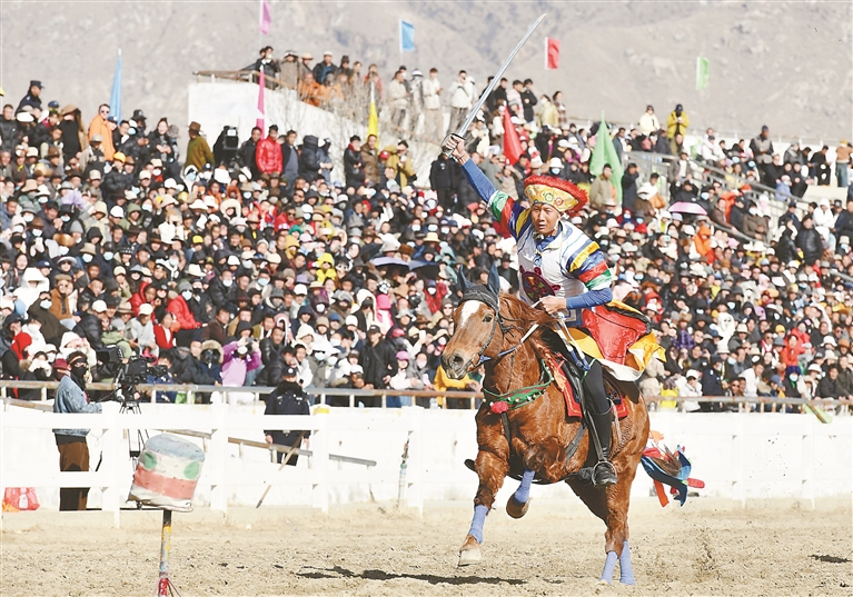 藏历新年初三,由西藏自治区体育局、西藏自治区体育总会主办的民族传统马术表演暨民族赛马活动在拉萨赛马场隆重举行。数千名各族群众欢聚一堂,欣赏惊险刺激的马术表演与风驰电掣的赛马盛况,共庆传统佳节,同享新春喜悦。