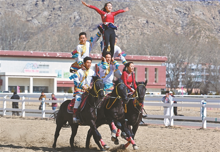 骑手在表演马上技巧。新华社记者 丁增尼达 摄