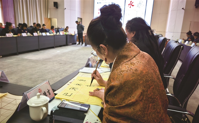 妇女代表在笔墨书香中感受中华优秀传统文化魅力。