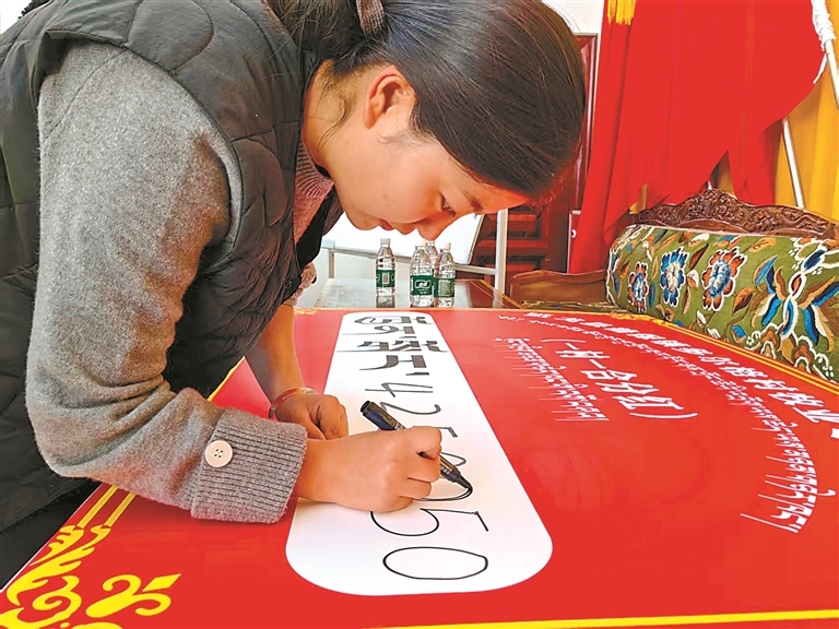 “我们坚持牧业为主,多种经营,村集体经济年年大丰收。”驻村专干尼玛曲珍一参加工作就在村里,已工作了6年,她为了准备第二天的分红,前一天加班到凌晨两点,眼睛还带着红血丝,不时滴着眼药水。