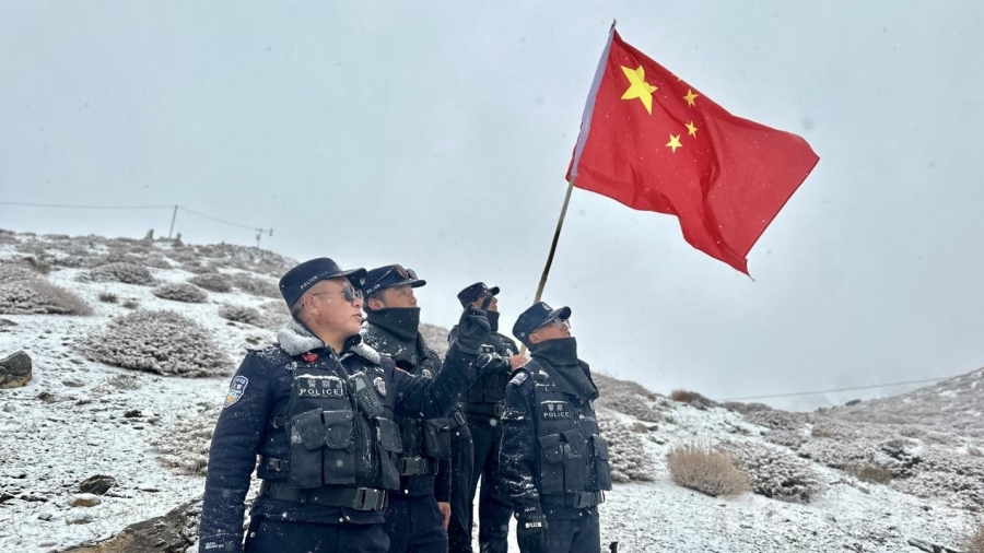 春节前夕,洪晓华带领三名新警在中尼边境巡逻