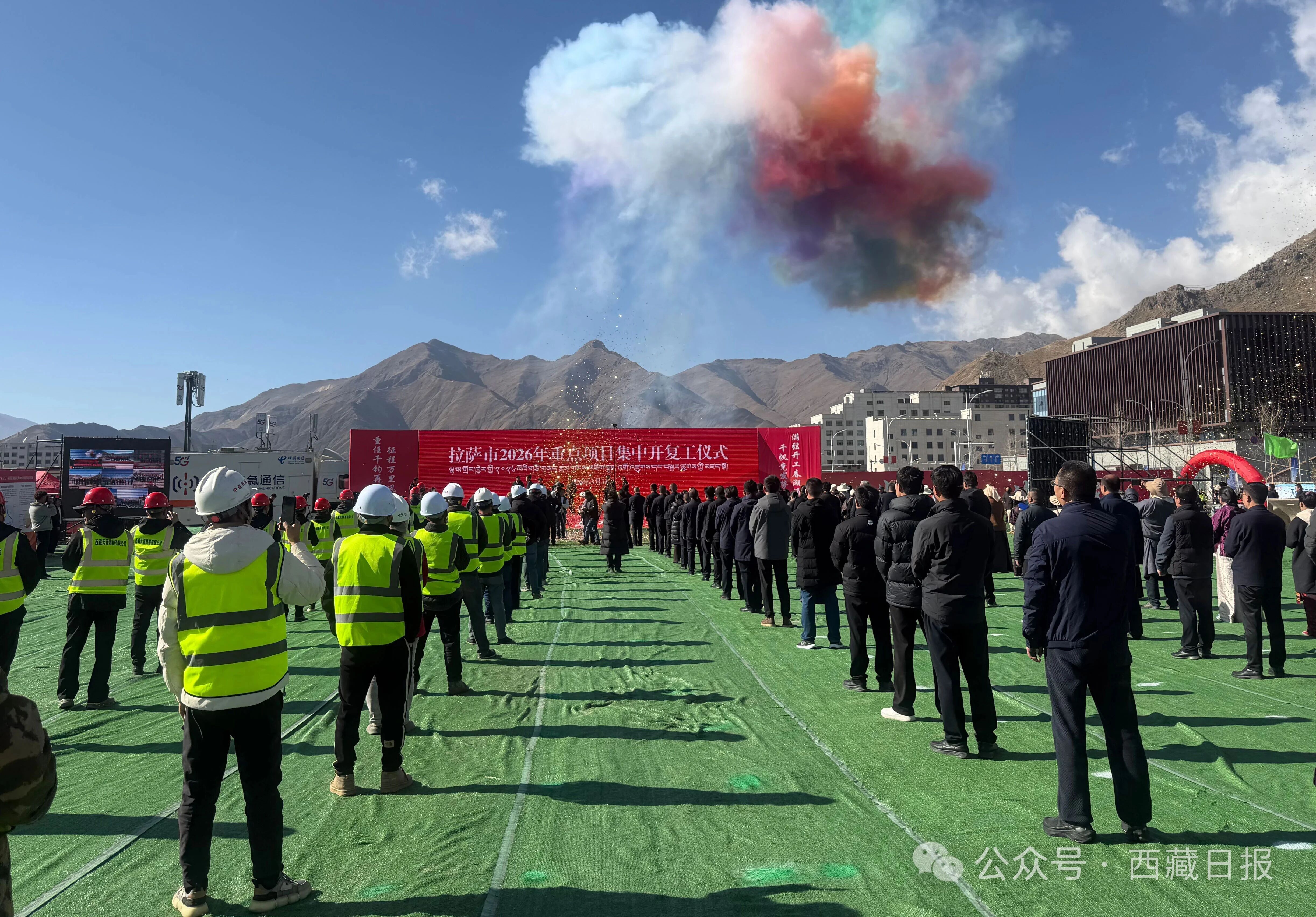 图为拉萨市2026年重点项目集中开复工仪式现场。记者 卢文静 摄