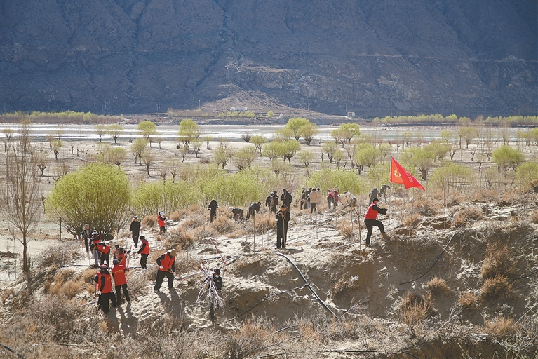 春风送暖,高原吐绿。近日,山南市桑日县2026年春季全民义务植树活动在该县滨江大道雅鲁藏布江畔启动。来自全县的740余名党员干部、群众及志愿者,帮助1.1万余株油松、青杨等树苗在初春的高原“安家”,以实际行动为高原增绿添彩。