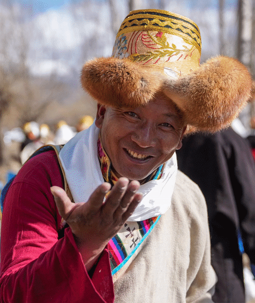 他身着氆氇藏装