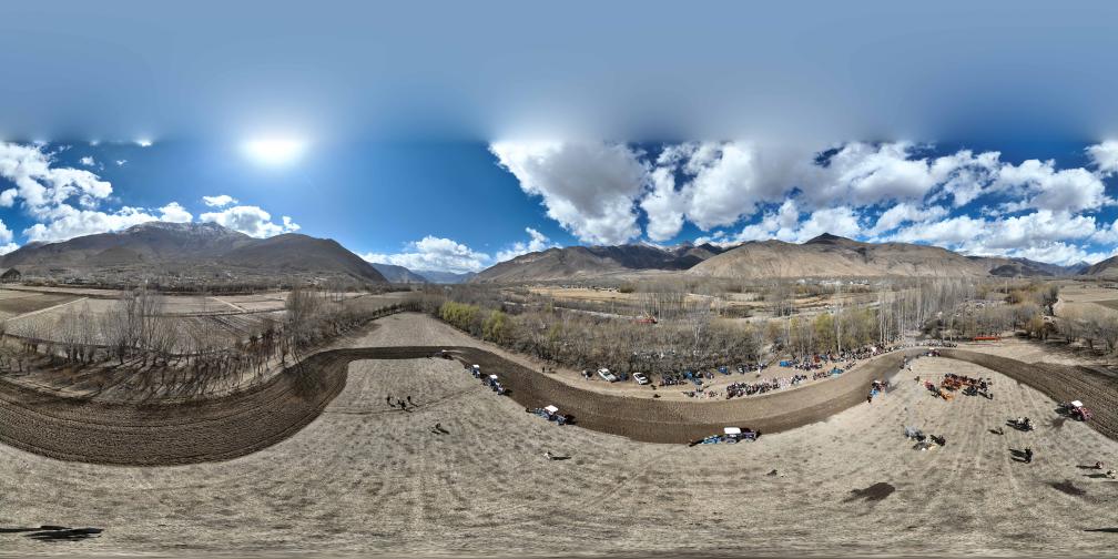 2026年3月16日,西藏山南市乃东区结巴乡结巴村举行春耕仪式现场(无人机全景照片)。新华社记者 晋美多吉 摄