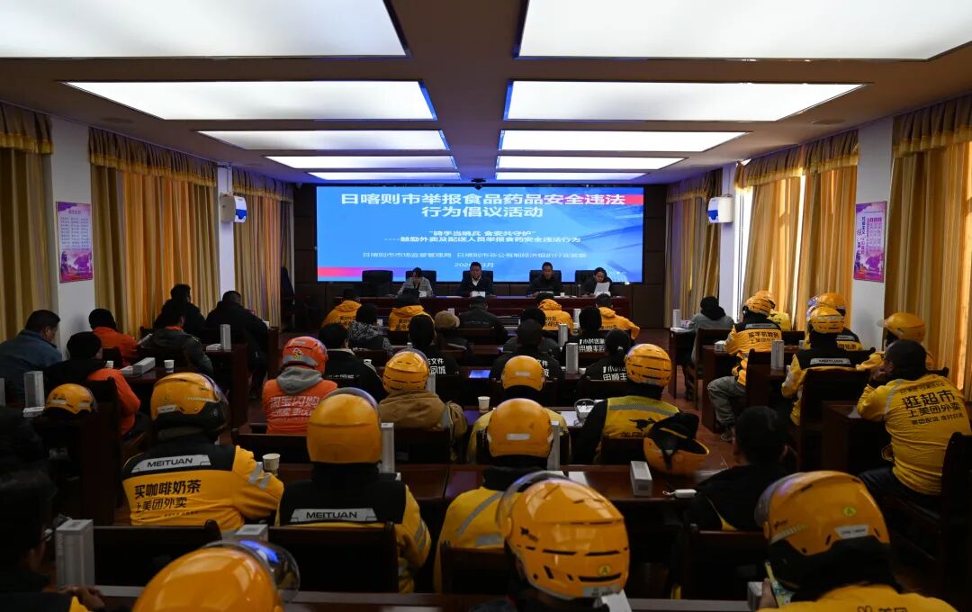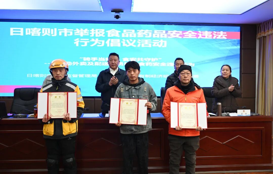 3月23日,日喀则市市场监管局举行食品药品安全违法行为举报倡议活动,设立日喀则市首家非公经济组织“食品药品安全义务监督站”,授予43名外卖骑手“食药安全义务监督员”的身份,为守护市民“舌尖上的安全”筑牢坚实防线。