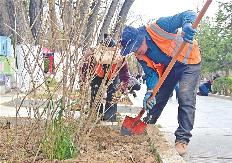 连日来,拉萨市宗角禄康公园内一派繁忙景象,园林工人抢抓春季绿化黄金时节,有序开展苗木栽植工作,为公园增添盎然生机。