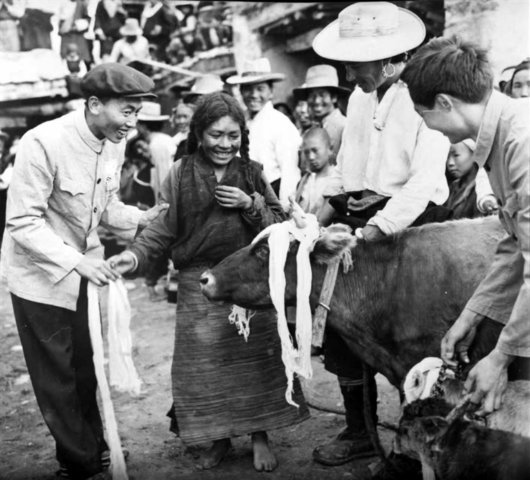 图为翻身农奴分到了牛(1959年摄)。