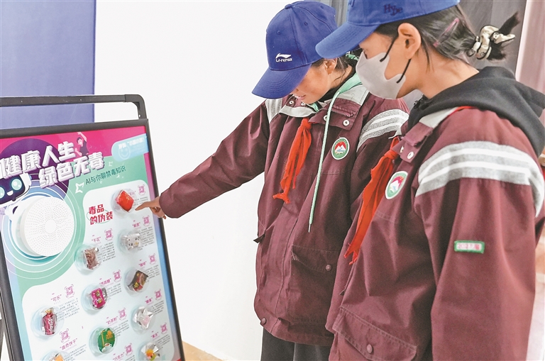 活动现场,墨竹工卡县公安局禁毒大队相关工作人员结合仿真毒品、图文展板及典型案例,详细讲解传统毒品与新型毒品的种类、危害,重点剖析伪装性毒品的隐蔽性与风险,引导学生提高警惕、远离毒品。