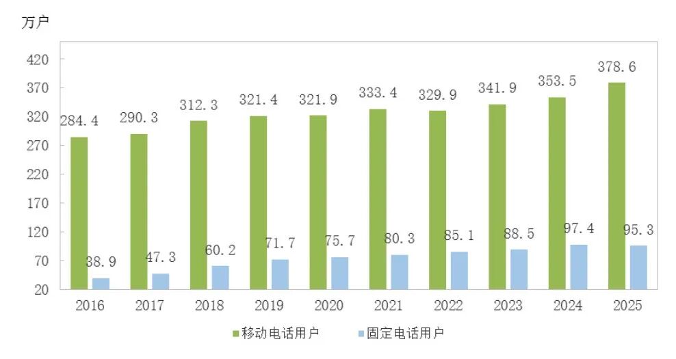 图9 2016-2025年电话用户数