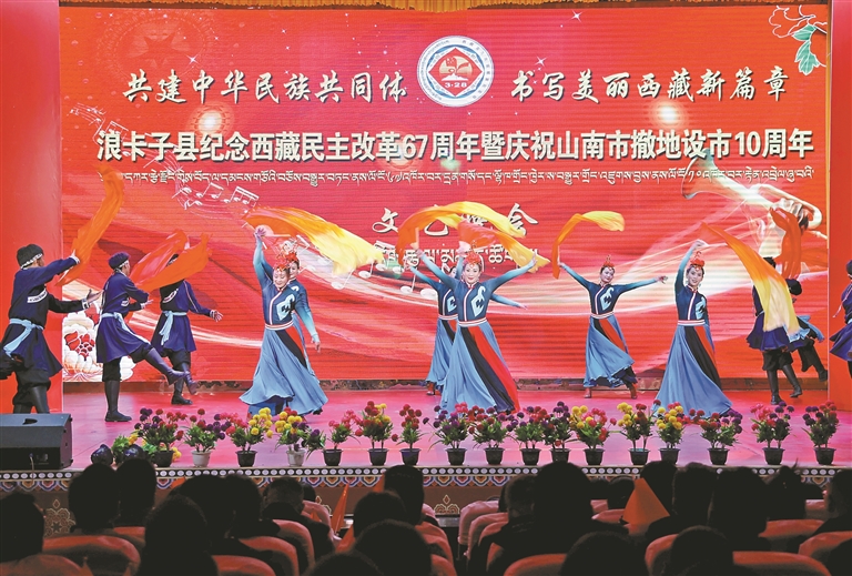 浪卡子县举办纪念西藏民主改革67周年暨庆祝山南市撤地设市10 周年文艺演出活动。