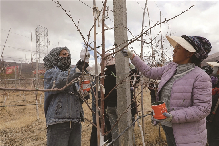 商报讯(通讯员 巴桑卓嘎 记者 旦增玉珍)近日,在山南市扎囊县朗赛岭矮化苹果种植基地3号园区,春季果园管护工作正有序开展,果农们抢抓果树生长关键期,通过精细化作业筑牢丰产增收根基,让矮化苹果成为带动群众致富、助力乡村振兴的“致富果”。