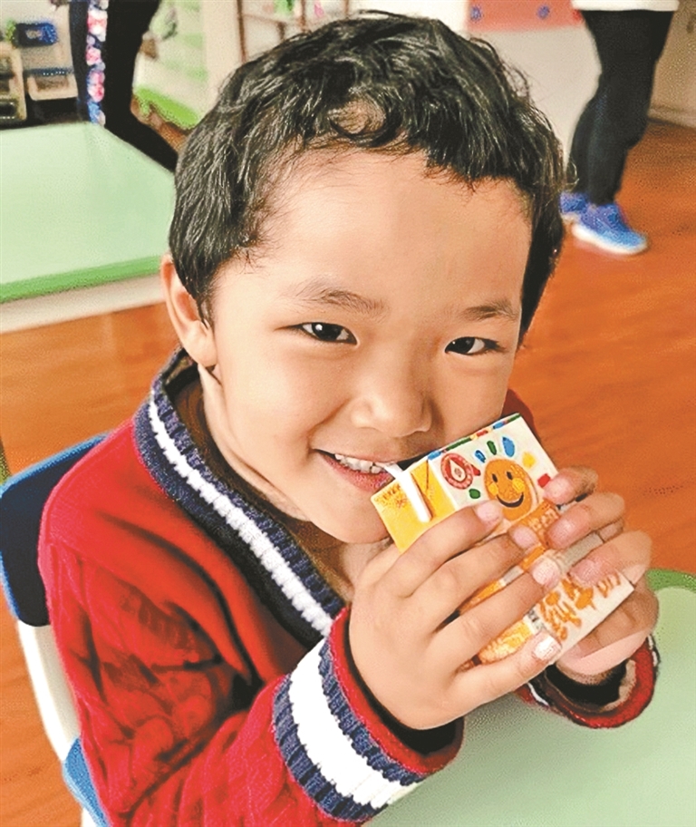 图为幼儿园儿童在饮用西藏净土乳业有限公司的“学生饮用奶”(资料图片)。