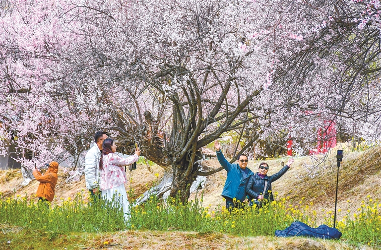 图为游客在林芝市嘎拉村“桃花源”景区内打卡拍照。记者 刘枫 摄