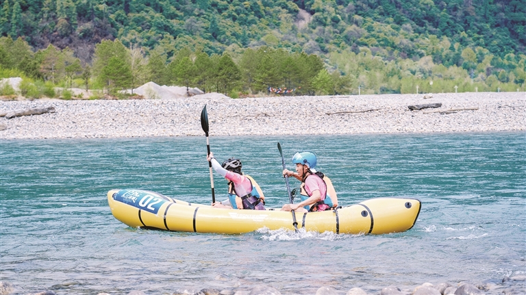 最美赛道,竞技观光实现双向奔赴。赛事紧扣全民健身与体旅融合主题,依托易贡乡得天独厚的高原生态资源及国家级高海拔训练基地优势,匠心打造集竞技挑战、健身休闲、生态观光于一体的高原户外盛会。全程28.5公里的“最美赛道”串联起易贡湖、原始森林、油菜花田,选手们在山地骑行、双人皮划艇、高原越野跑三大项目中挥洒汗水、奋勇争先,同时尽览雪域春日盛景,真正实现了运动活力与生态美景的双向奔赴。