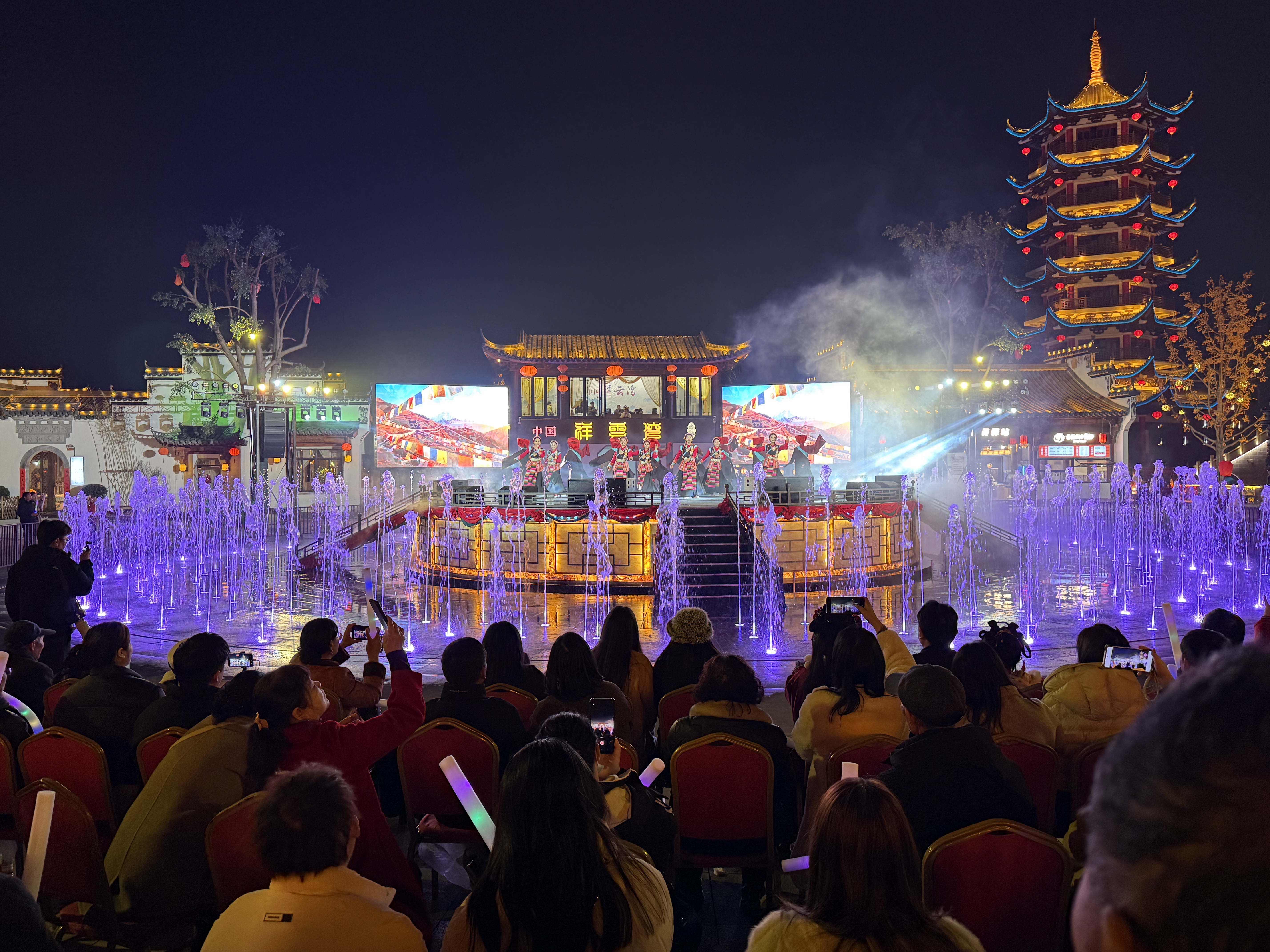 在湖北省云梦县博物馆里,古老藏戏与千年秦简隔空对话;在祥云湾文旅景区音乐喷泉舞台上,《吉祥昂仁》藏戏舞演员宛如格桑花盛开在水光潋滟间;在楚王天下大舞台上,《大鹏山》六弦琴音雄浑豪迈、舞步粗犷奔放,将神山的巍峨与雪域的壮阔搬到江汉平原;在胡金店万亩油菜花海中,《多彩的哈达》为春日花海增添了浓郁的民族风情;在安陆、孝昌等周边县市,《同心结·幸福缘》舞蹈节奏欢快、《日喀则我为你牵挂》三重唱旋律悠扬,将高原辽阔与南国柔美完美融合……