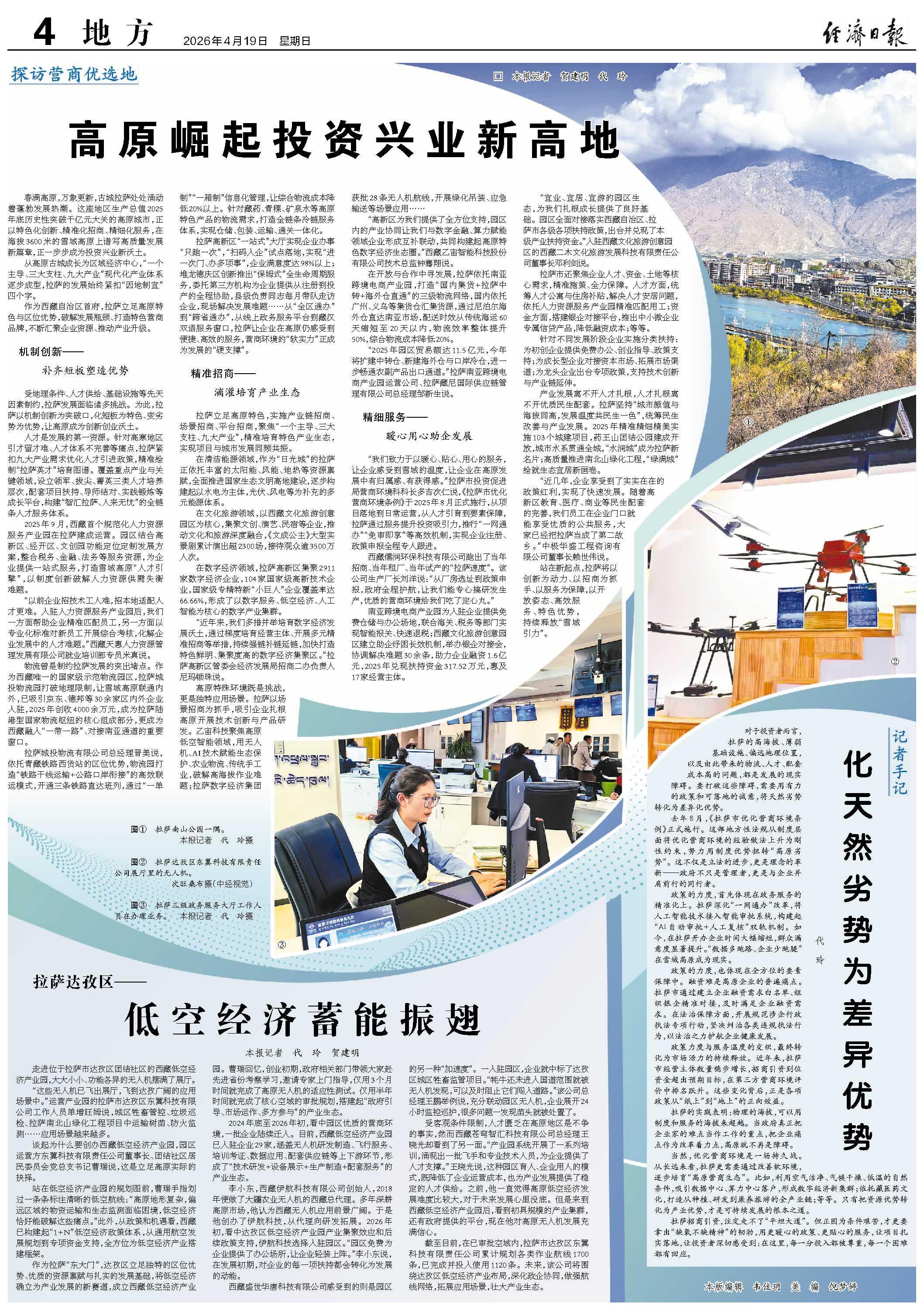 作为拉萨“东大门”,达孜区立足独特的区位优势、优质的资源禀赋与扎实的发展基础,将低空经济确立为产业发展的新赛道,成立西藏低空经济产业园。曹瑞回忆,创业初期,政府相关部门带领大家赴先进省份考察学习,邀请专家上门指导,仅用3个月时间就完成了高原无人机的适应性测试。仅用半年时间就完成了核心空域的审批规划,搭建起“政府引导、市场运作、多方参与”的产业生态。