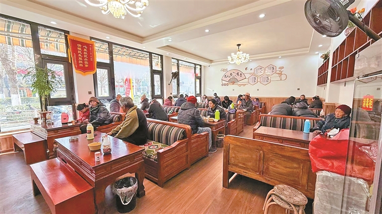 图为群众在扎细新村社区“一老一小”惠民甜茶馆休憩用餐。