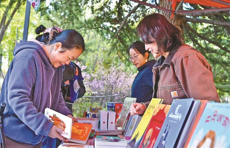 在第三届“拉萨春日书会”暨拉萨市全民阅读推广周系列活动中,市民群众在图书市集选购书籍。记者 旦增兰泽 摄