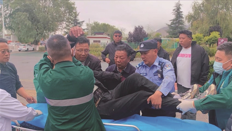 加永泽仁正在帮助遇困群众就医。图由加永泽仁提供