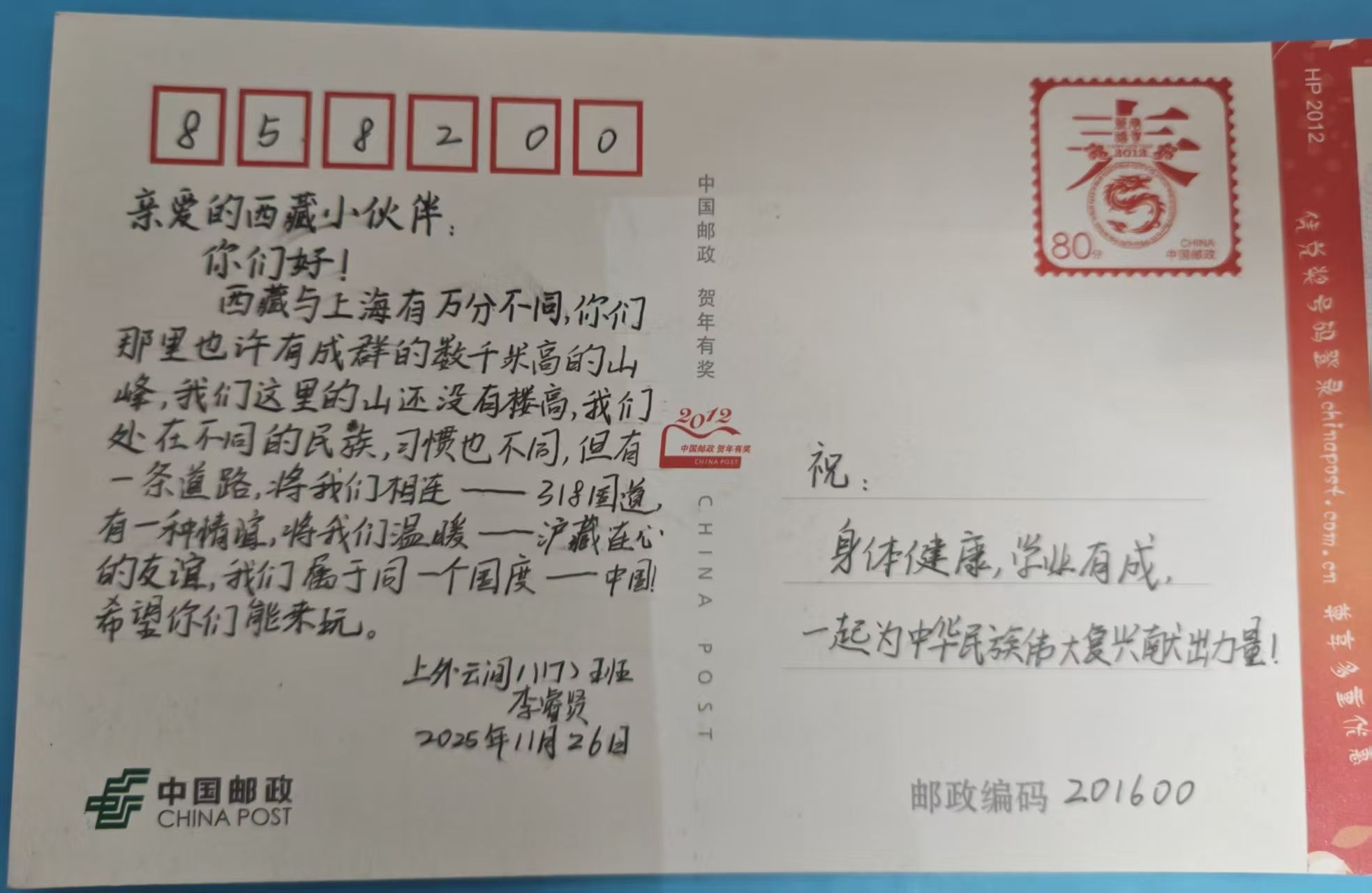 “我在明信片上看到了上海松江的美景,也感受到了上海小伙伴的真诚祝福。”定日一中学生卓玛高兴地说,“我在回信中介绍了我们西藏的雪山、圣湖,邀请他来我家做客,体验藏家风情。” 这种互动不仅拓展了学生的视野,也为促进民族交往交流交融创造了条件。