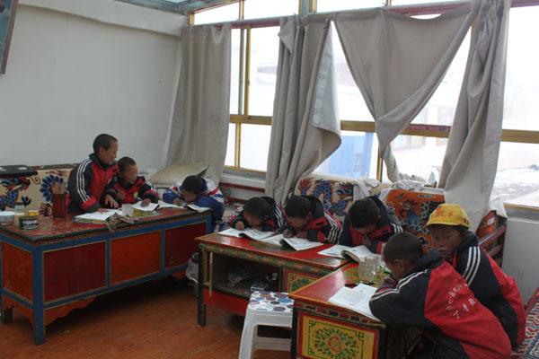 “哥哥,这道题怎么做啊?”“哥哥,你给我们放动画片嘛!”“哥哥,你做的菜真好吃,你看我又吃了一碗饭了!”这里不是学校,而是俄列村村委会。