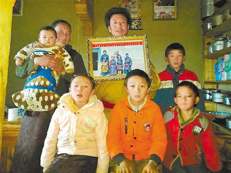 领到“全家福”的仲佰村村民邓巴伦珠(后排右二)同家人留影。 通讯员 次仁旺堆 摄