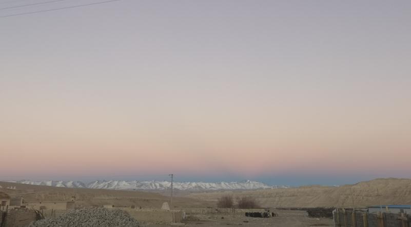 傍晚,夜幕降临,天空是蓝粉色的。早起出门的牛群踏着暮色回到村庄,叮叮当当的郭钟声再次响起,村庄的一天结束了。