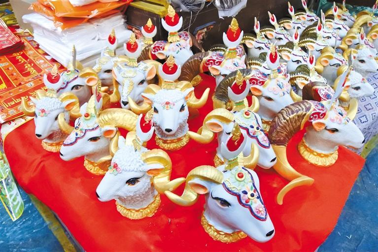 “隆果”也只在藏历新年前出售,是藏历新年必备的年货之一,从新年的初一到十五期间摆放在家里,其余时间,即便是在常年热闹的冲赛康市场也很难寻见,所以当看到塑彩羊头时,也就代表年关将至。
