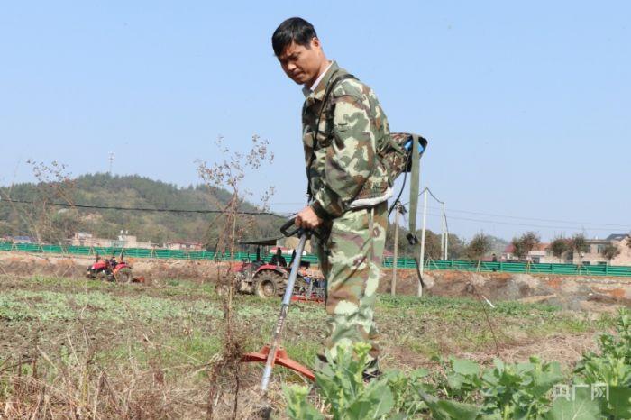 张祖权在田埂除草(央广网发 欧阳林摄)