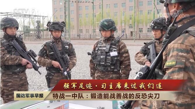 武警新疆总队某机动支队特战一中队驻守在新疆,组建29年来,中队官兵先后执行30多次反恐处突任务,铸就了“忠诚、勇敢、团结、善战”的特战队魂。2014年4月27日,习主席来到特战一中队视察,勉励官兵们要牢记职责、再接再厉,坚决完成以执勤处突为中心的各项任务,为祖国和人民建功立业。8年来,中队官兵始终牢记主席嘱托,苦练过硬本领,守护着边疆人民的幸福生活。