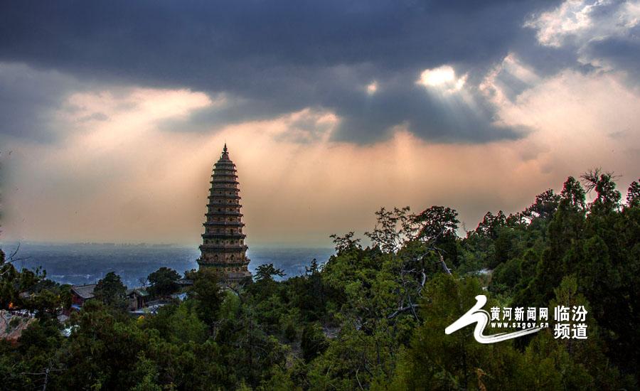飞虹塔位于山西洪洞县东北部霍山的广胜寺,始建于汉代,前身是阿育王塔。飞虹塔是五座佛祖舍利塔和中国现存四座古塔之一,也是迄今为止发现的唯一留有工匠题款、最大最完整的琉璃塔。现塔为明武宗正德十一年(1516年)始建,嘉靖六年(1527年)完工,历时12年建成。它和曾在这里珍藏的《赵城金藏》、水神庙元代壁画,并称为“广胜三绝”。