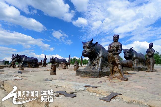 唐代黄河古渡口蒲津渡遗址,位于永济市古蒲州城西门外,是当时最大的桥梁工程。考古发现的牵拉桥的遗物有铁牛、铁人各4尊及铁山、七星铁柱等镇河之物,所用铸铁耗去了唐代当时年铁产量的1/4,展现了我国古代桥梁建筑、冶铸技术等方面的高度成就。