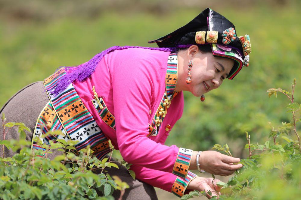 9月25日,陈望慧在四川阿坝州小金县新桥乡共和村的玫瑰园中。新华社记者 刘琼 摄